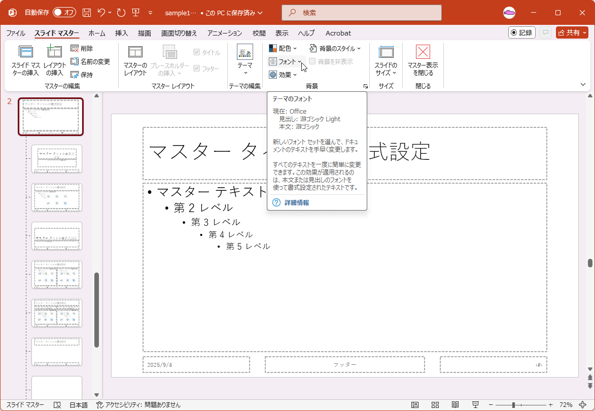 スライドマスターのフォントを変更するには