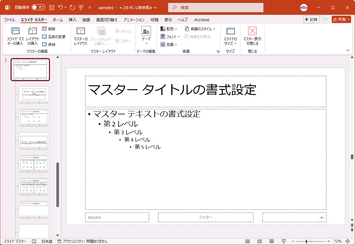 スライド、配布資料、ノートのマスターを変更する