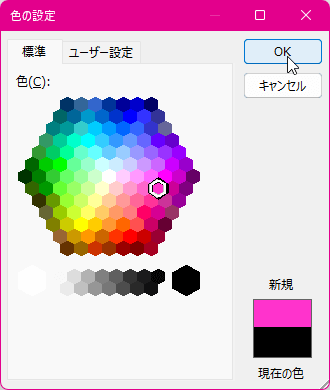 [ホーム]タブを開き、[フォントの色]ボックスから既定のフォントの色を選択します。一覧にない場合は、[その他の色]を選択し、指定したい色を選択します。