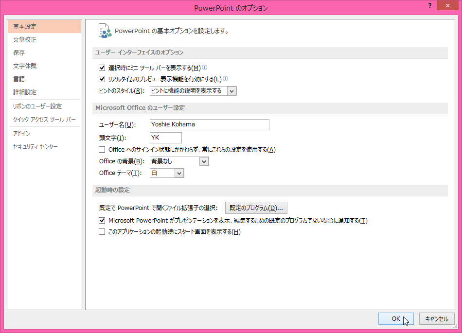 Office 2013で起動時にスタート画面を表示しないようにするには
