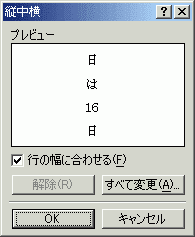 - 縦中横のダイアログボックスが表示されますので、プレビューを確認し、OKボタンを押してください。