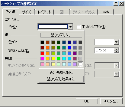 右上のOKボタンを押して、オートシェイプの書式設定のダイアログボックスの右下の[OK]ボタンを押すと、