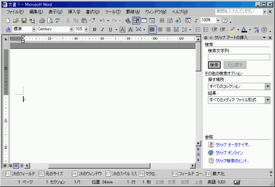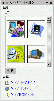 すると、クリップアート挿入作業ウィンドウが登場しました。