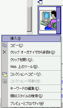 挿入したいクリップをクリックすると、このようにショートカットメニューが表示されます。