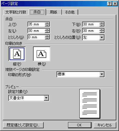 - 上、下、左、右などを設定してOKボタンを押してください。 なお、印刷の向きもこちらで設定できます。