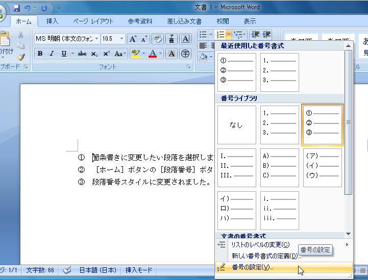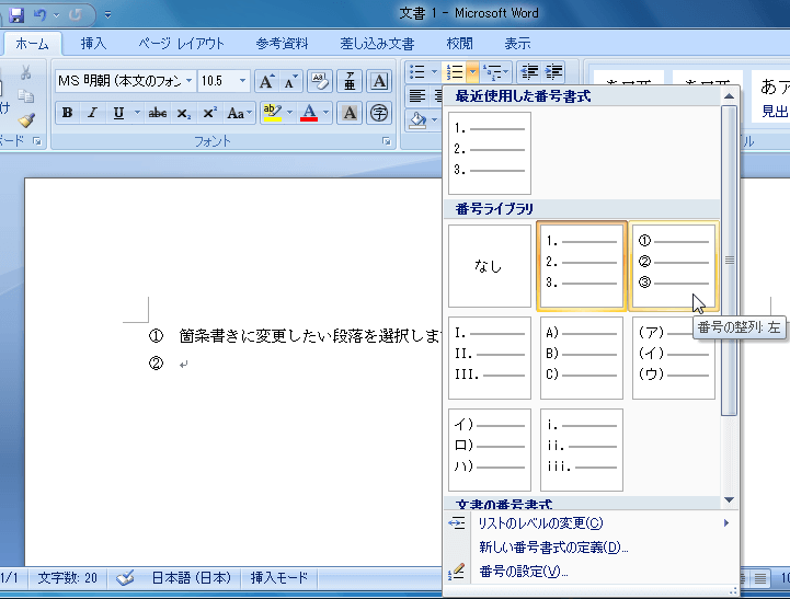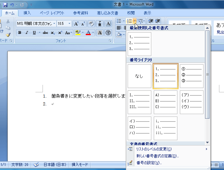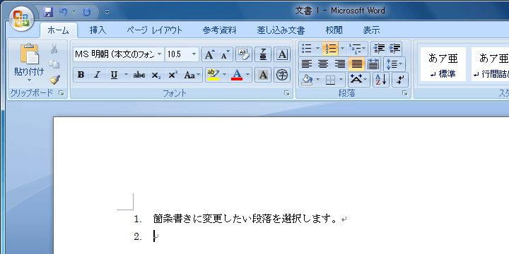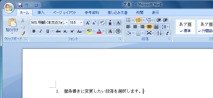 番号付きリストにスタイルを変更する