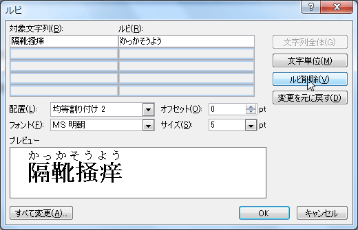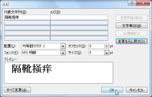 - ルビが解除されたことを確認して、[OK]ボタンをクリックします。