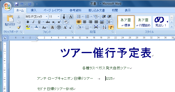 - タブを設定したい場所にカーソルを移動し、Tabキーを押します。
