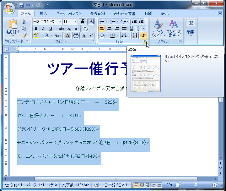 - Word for iPhone:文字列を所定の位置に揃えるには