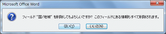 - 削除してもよいか確認メッセージが表示されます。削除する場合は[はい]ボタンをクリックします。