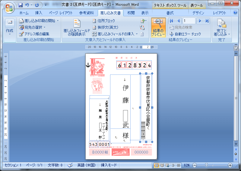 はがき宛名印刷ウィザード内で対応していない形式のファイルや、あとでほかの住所録ファイルを差し込みたい場合、データファイルの変更を行うとよいでしょう。ここではWord 2007でExcel形式の住所録に後で差し替える方法について説明します。