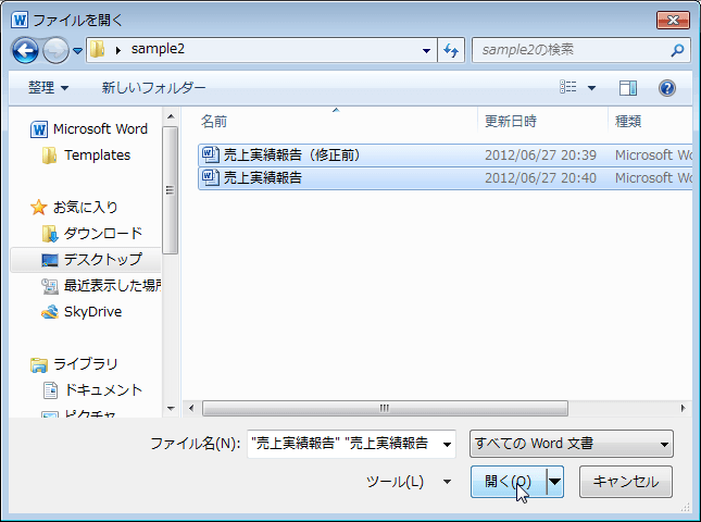 ただし、Wordからファイルを開くコマンドを利用せず、Windowsフォルダーに保存されているWordの複数のファイルを選択してダブルクリックした場合は並べて表示することはできないので注意してください。