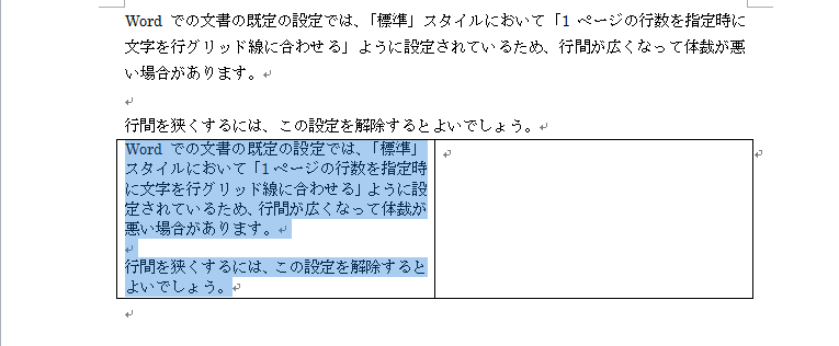 - 選択された範囲において、行間が狭くなりました。