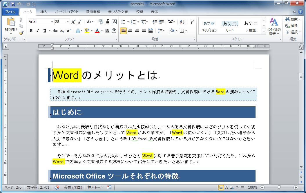 - [検索と置換]ダイアログボックスを閉じても検索された項目がすべて強調表示されました。