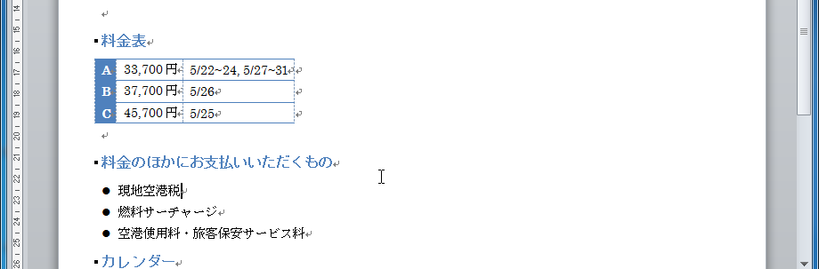 表全体を選択するには、マウス操作が一番手っ取り早い方法です。しかし、表内の最初のセルから最後のセルまでドラッグする必要はありません。