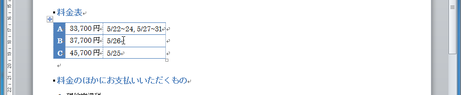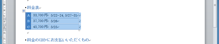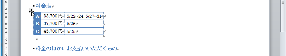 - マウスポインターを表内に移動すると、表の左上に表選択のアイコンが表示されます。表内にマウスポインターを移動すると