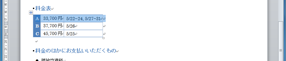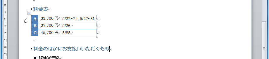 表の操作
