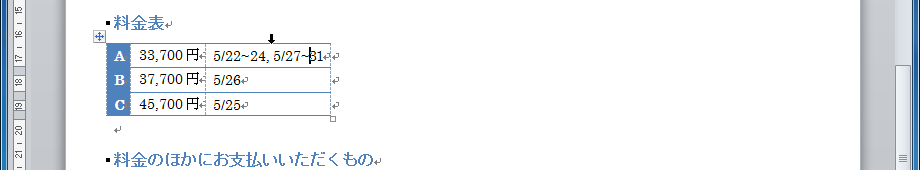 - 対象となる列内にカーソルを移動します。