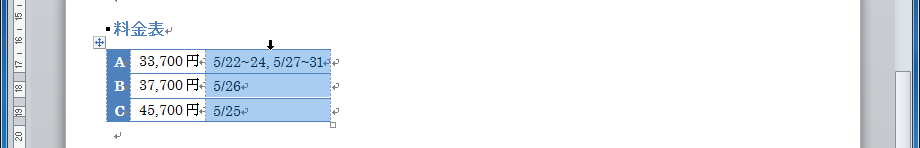 - 選択したい列の上側にマウスポインターを移動すると、ポインターの形状が