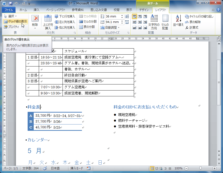 表をレイアウト枠として活用することで、コンテンツを思い通りに配置することができます。しかし、レイアウト枠には罫線が不要なので、罫線なしの枠が存在します。既定ではその枠の境界線であるグリッド線が表示されているので、実際にどのように印刷されるか編集画面では確認できません。