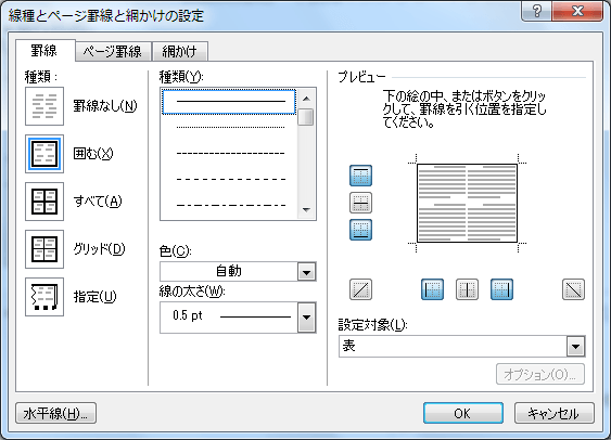- [線種とページ罫線と網掛けの設定]ダイアログボックスが表示されました。