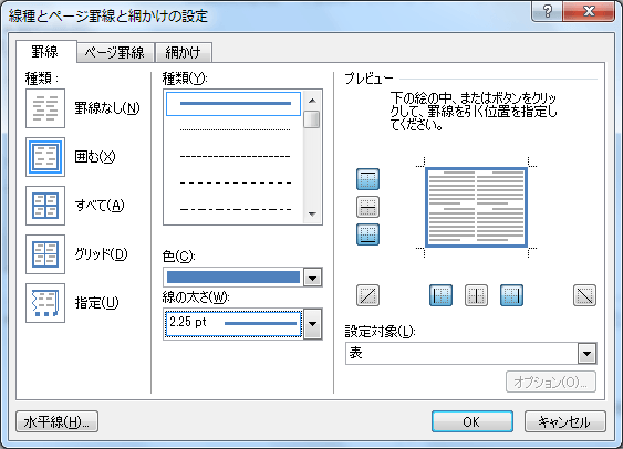 - 線の太さは[2.25pt]を指定します。
