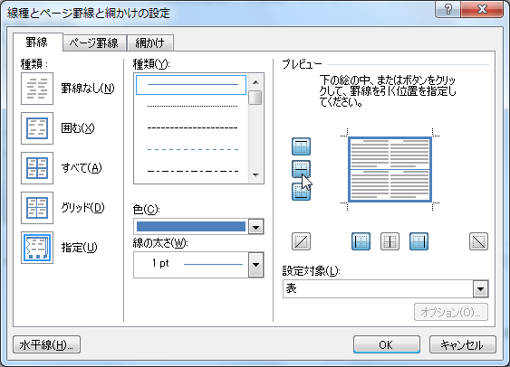 線種とページ罫線と網掛けの設定ダイアログボックスを表示する