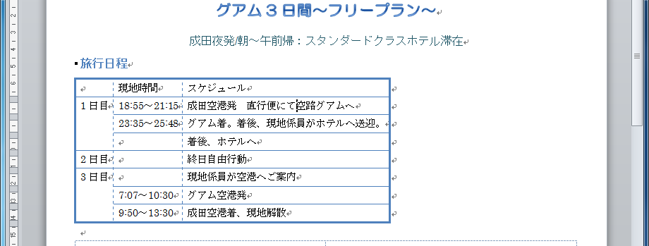 - 表内にカーソルを移動します。