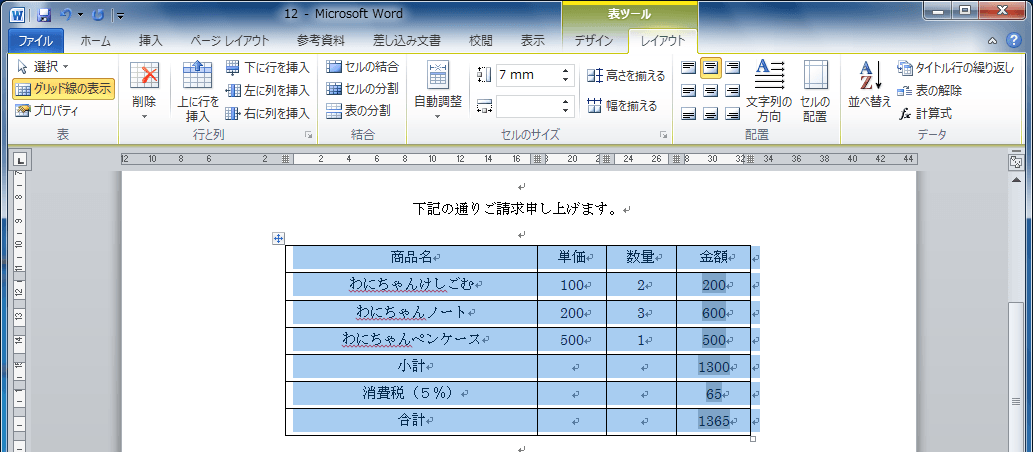 - 対象とする行または列を選択します。複数選択も可能です。ここでは行を選択します。