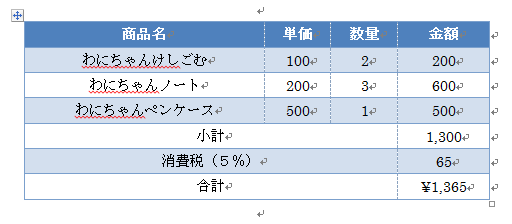 Wordにおけるそれぞれの表示形式は以下の通りです。