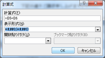 桁区切りや通貨付きに表示形式を変更するには、[計算式]ダイアログボックスの[表示形式]ボックスから表示形式を設定すると簡単です。