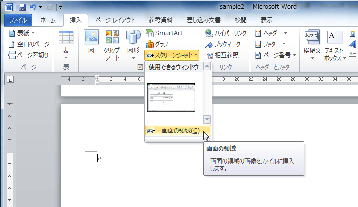ウィンドウの一部のスクリーンショットを挿入する