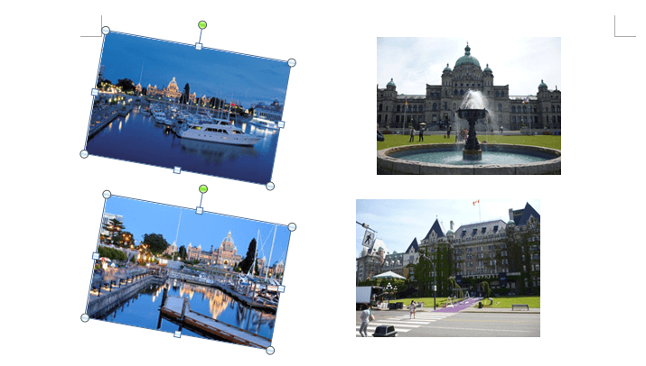 前面または背面に配置された複数の図を整列配置させたい場合、それらまとめて選択して、[図ツール]の[書式]タブを開き、[配置]グループの