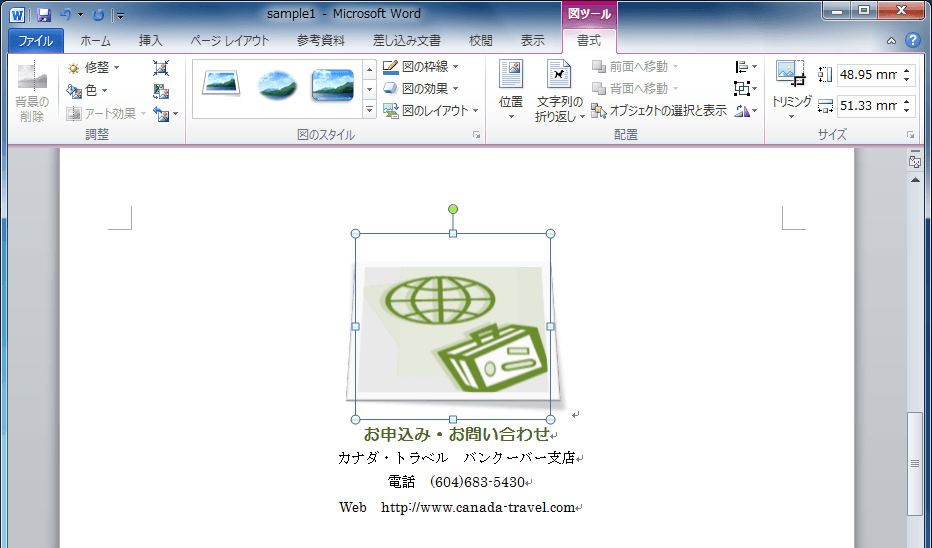 クリップアートの縁に面取りやフレームなどのスタイルを適用するには、クリップアートを選択し、[図ツール]の[書式]タブを開いて、[図のスタイル]グループの[図クイックスタイル]一覧から目的のスタイルを選択します。