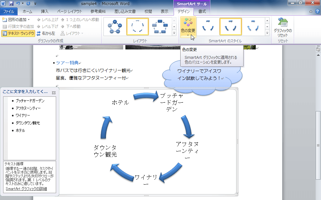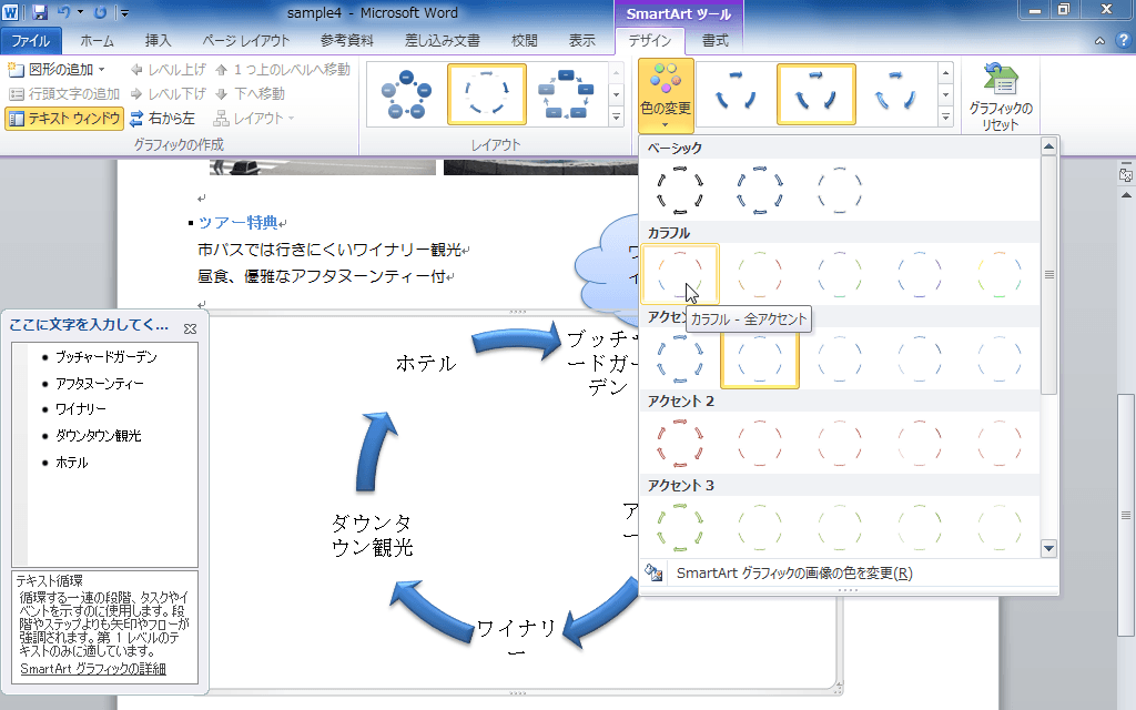SmartArtグラフィックの配色を変更する