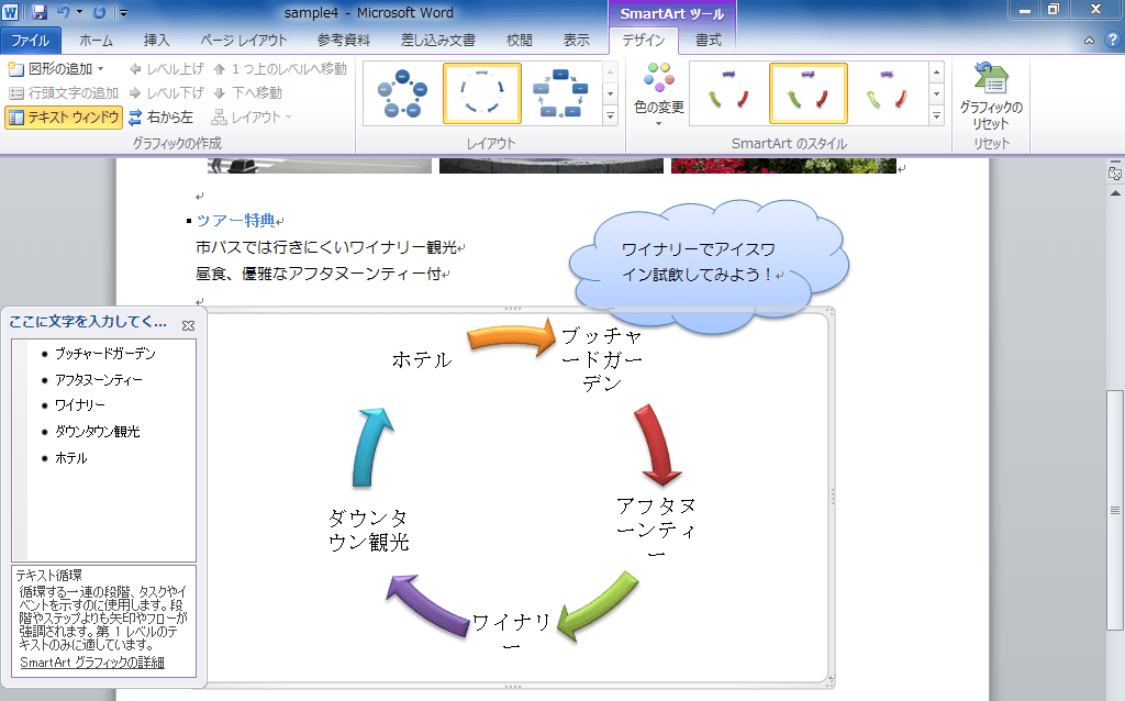 SmartArtグラフィックの挿入と書式設定