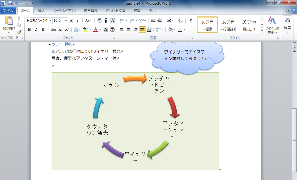 - [図形]グループの[図形の塗りつぶし]をクリックして、一覧から塗りつぶしの色を選択します。