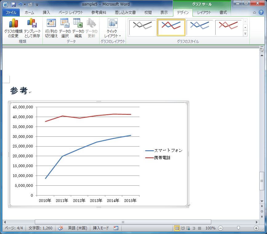 - Wordにタスクを切り替えると、このようにグラフが出来上がりました。