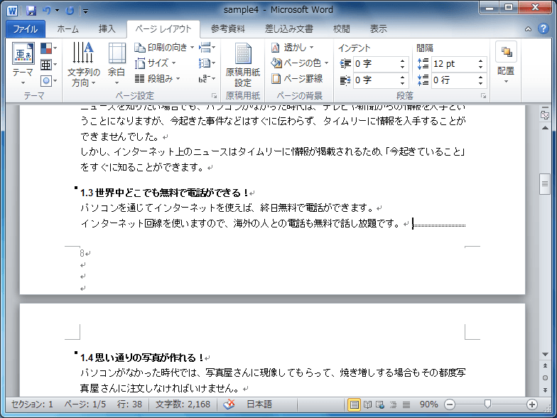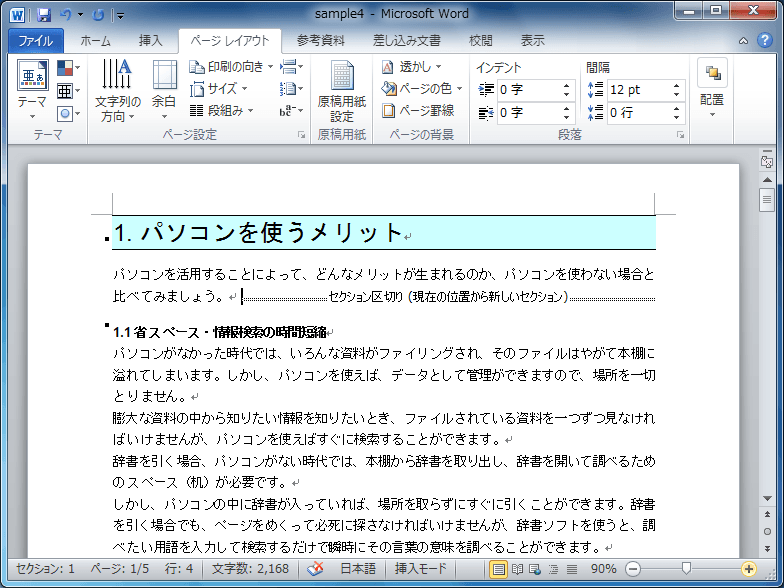 - 段組みの次の段落だったセクション番号が1に戻りました。