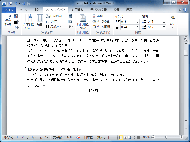 段組みとセクションの操作