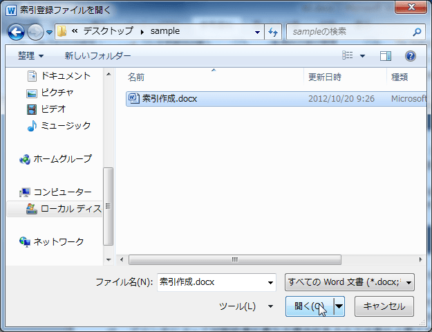 - [索引登録ファイルを開く]ダイアログボックスで、そのファイルを選択して[開く]ボタンをクリックします。