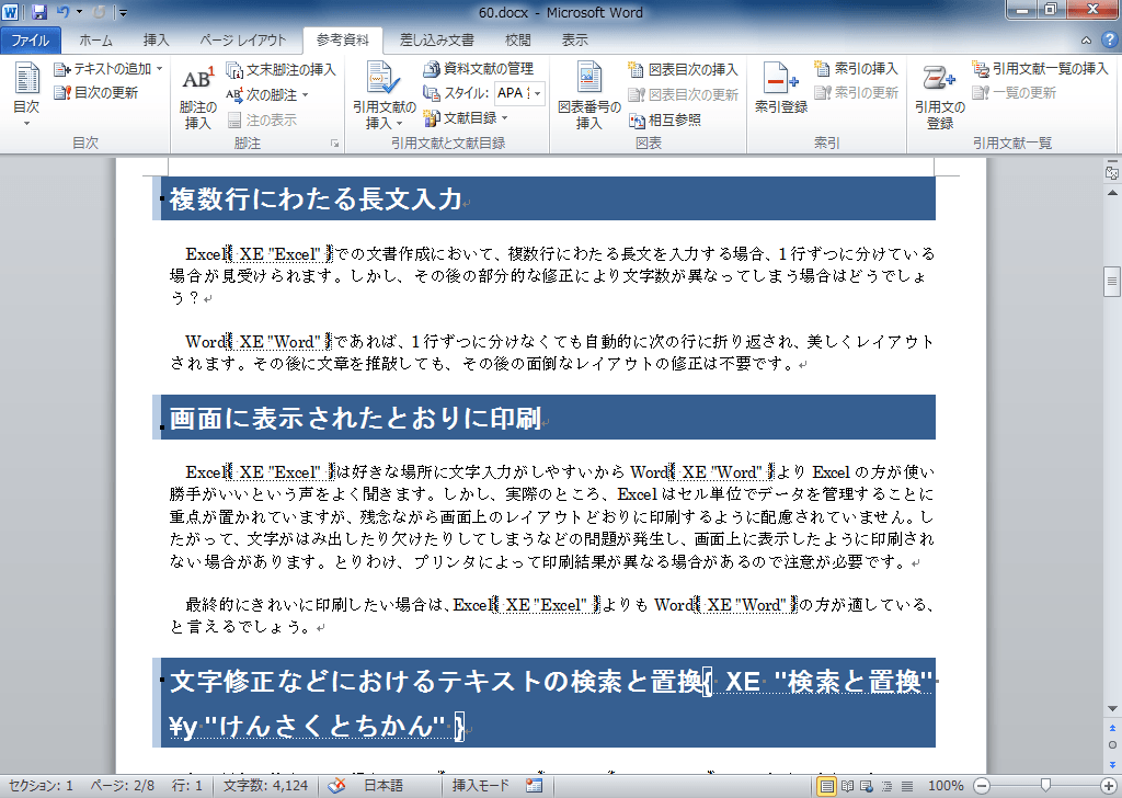 索引登録ファイルを作成したら、対象となる文書にそのファイルを使って索引を自動登録します。