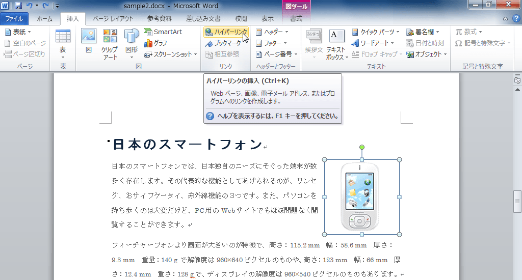 ハイパーリンクの挿入