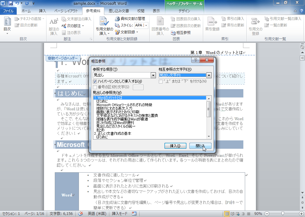 - 最後に[相互参照]の[閉じる]ボタンをクリックします。