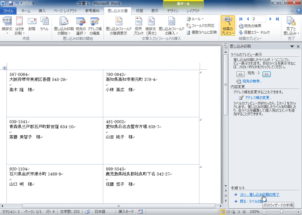 - [次へ: 差し込み印刷の完了]をクリックします。