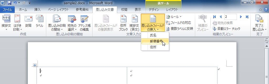 - 現在の内容が削除されてしまったので、それぞれ差し込みフィールドの挿入をし直します。