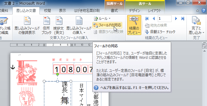 Wordから作成したアドレス帳ファイルではなく、独自で作成したアドレス帳のフィールドの情報をWordに正しく認識させるには、フィールドの対応を行います。