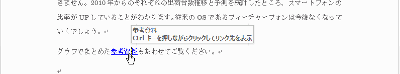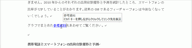 - ジャンプ先の先頭にカーソルを移動します。ここでは、最終ページの「参考資料」の先頭にカーソルを移動します。