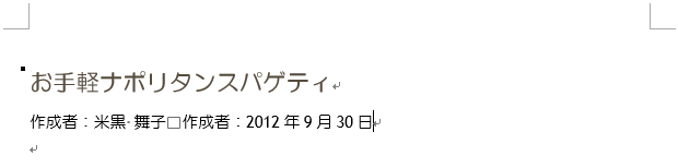 - 作成者フィールドの後に続けて全角スペースを挿入し、「作成日:」と入力します。