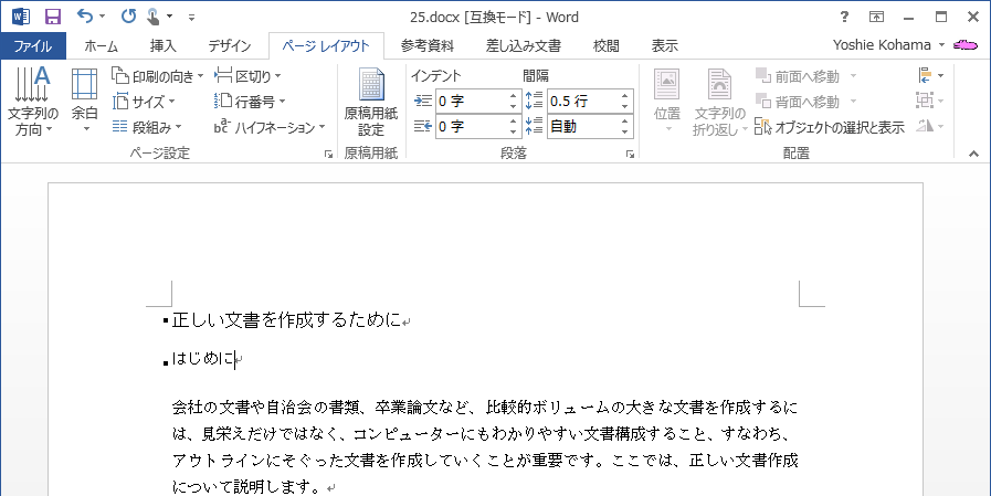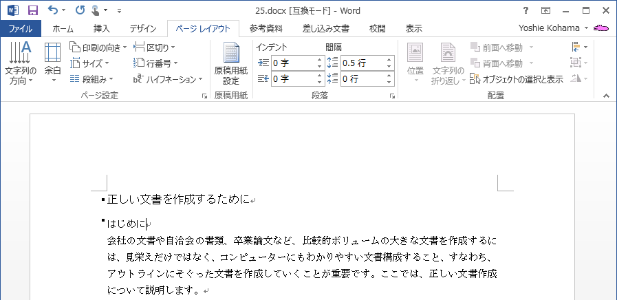 ここでは、段落前後の間隔幅をポイント単位ではなく、行単位で素早く指定する方法について説明します。